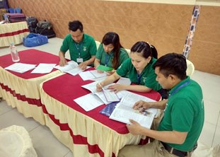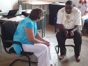We arrived by 8.15 and were eventually shown to a room with A/V and chairs and quickly rearranged the seating to as much of a horseshoe shape as possible. At 8.30 am we had four attendees, 14 at 9am and 21 at 9.30am, an hour after the start time. Registration, distribution of Confidence Rating sheets and provision of folders containing the Toolkit, timetable, paper and pen were concluded by 9.30am, ready for the first (truncated) introductory session. This was opened with prayer and a hymn readily sung by the group. Opening remarks from Tebello and our team then followed, and then a series of activities helped us all to get to know each other just a little. The first teaching session (What is Palliative Care, and You Can do Palliative Care in your setting) was led by Tebello. Tebello was not able to stay for the afternoon programme as she had to be at a site meeting. Joan Marston arrived during lunchtime, which was delivered late and which then altered the afternoon timings. The first afternoon session (You can improve your communication skills) and the last session (You can assess pain and other symptoms) were slightly truncated to enable us to finish on time and the day concluded with our usual practice of holding a 15 minute ‘Roundup’ which enables us to gather some feedback on the day in a non-threatening and often light-hearted manner. We were much encouraged by one participant’s comment that it felt as if they had been together for almost a week already, as they felt relaxed and positive.